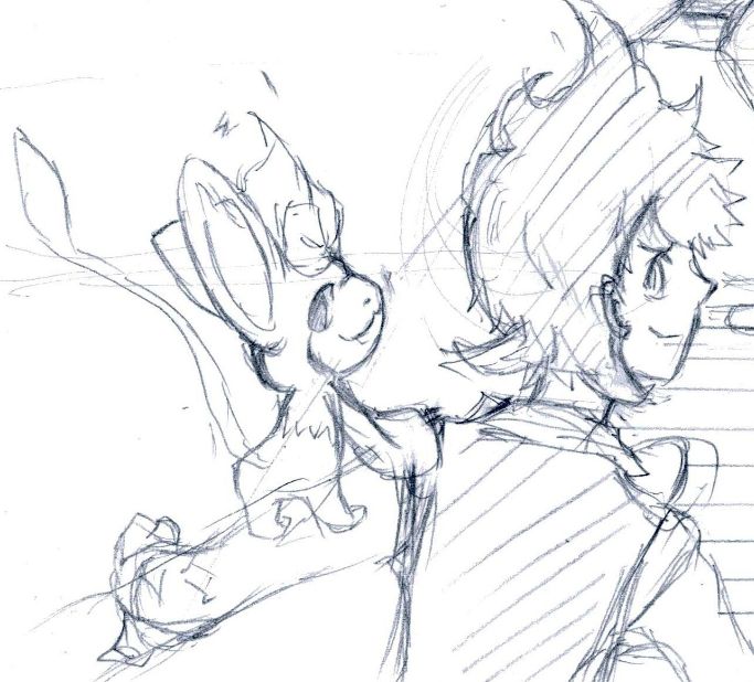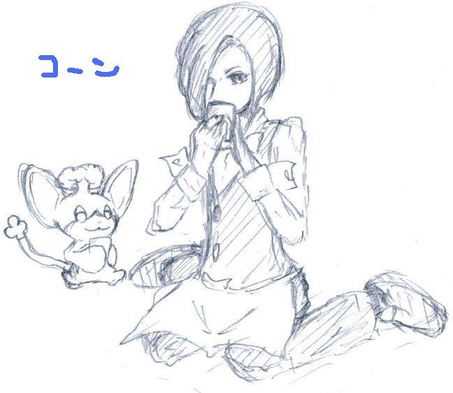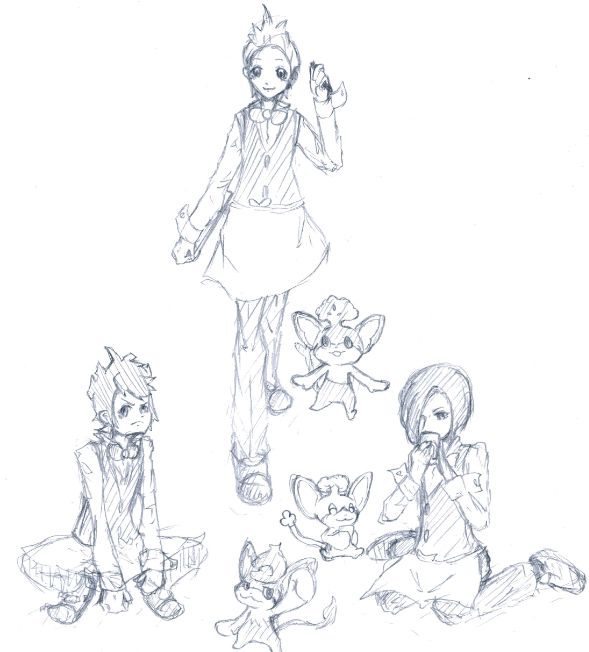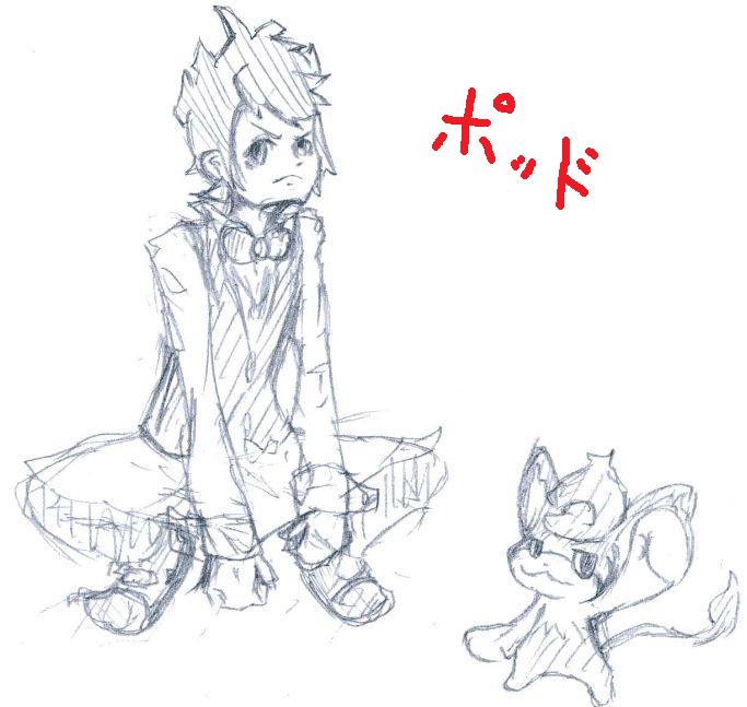ポッドさんのみですが、本当は三人三匹、男主、ビクティニを描いた絵でした。でも、描いてるうちに飽きてきてリタイアw