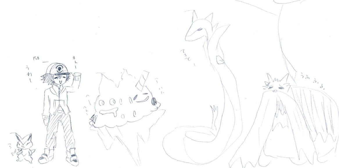 初クリアの際にいたメンバー。背丈はこんなんか?とか思いながら描いてた。レシラムも描いたんですが、雑すぎて消えてるw