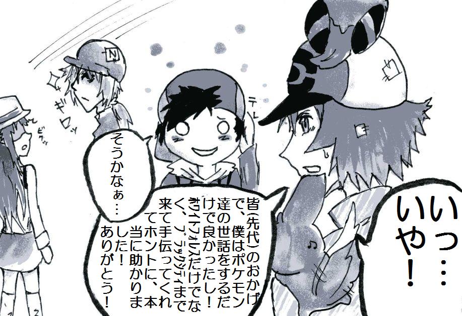ブ「いっ…いや! 皆(先代)のおかげで、僕はポケモン達の世話をするだけで良かったし! ホワイトフォレスだけでなく、ブラックシティまで来て手伝ってくれてホントに、本当に助かりました! ありがとう!」